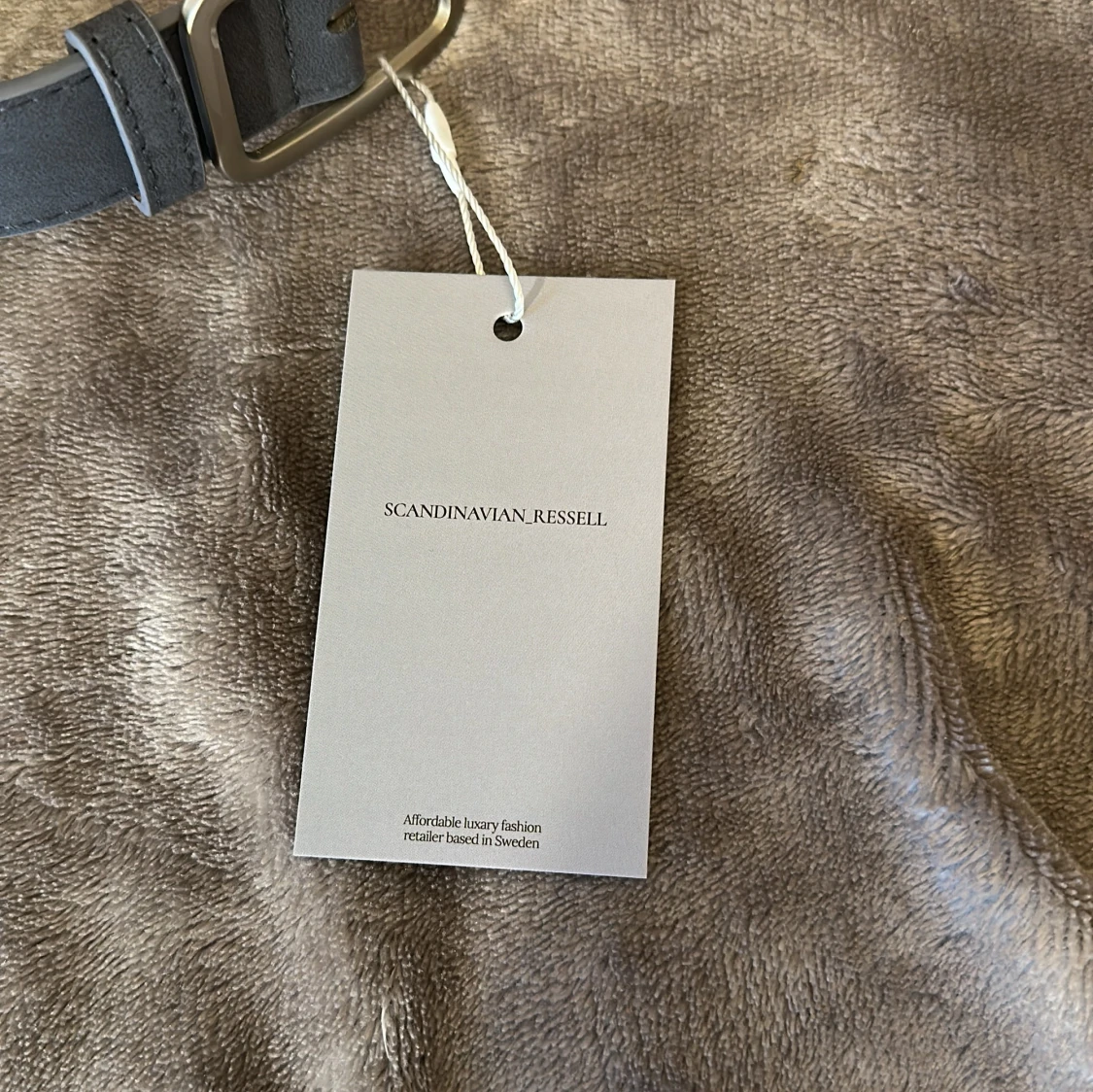 Stilrent mörkblått bälte med matt silverfärgat spänne. Bältet har en klassisk, rak form och är gjort i skinn med ljusbrun insida. Perfekt accessoar för att lyfta din outfit. 100cm