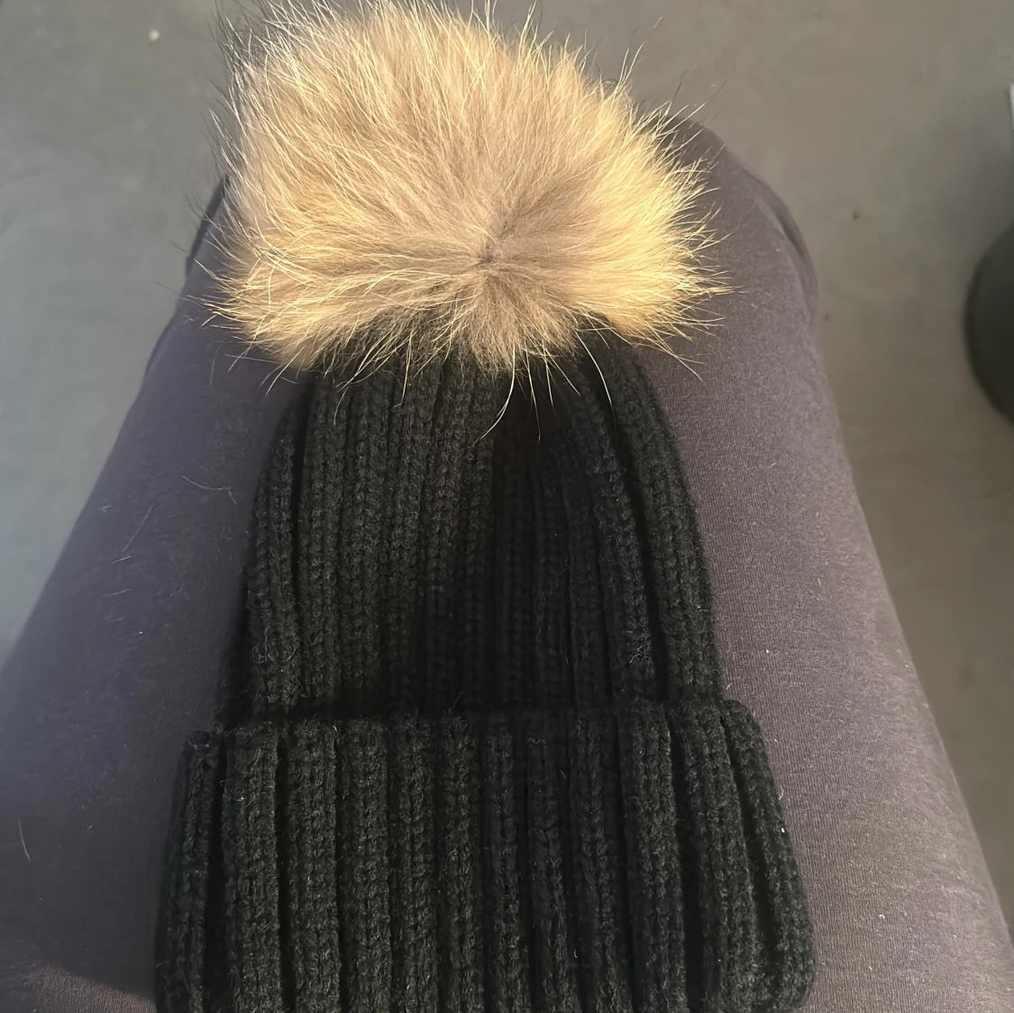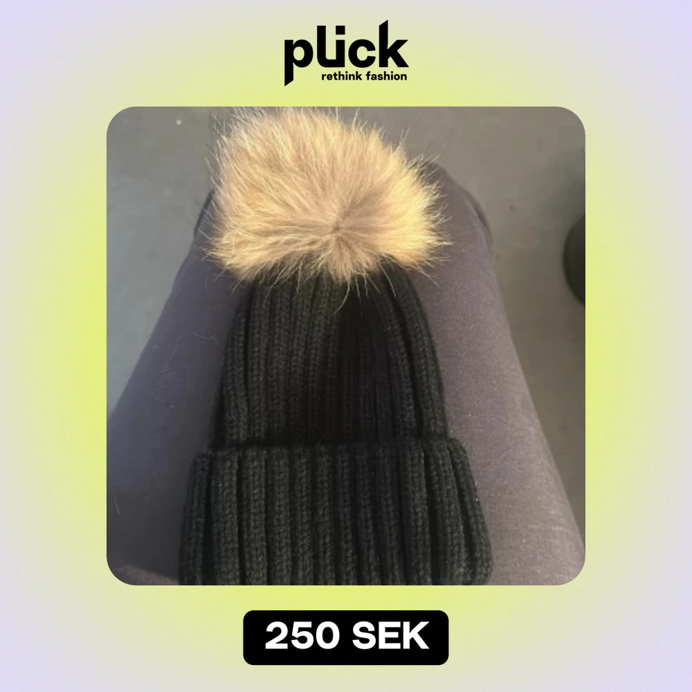 Svart stickad mössa från amazon med äkta päls bolll, jätte fin och knappt använd💗
