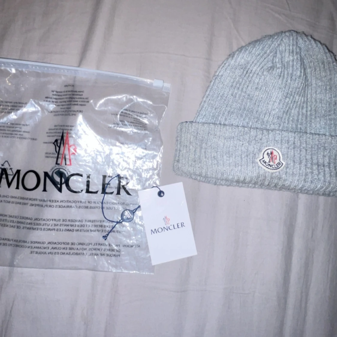 Moncler mössa grå bra skick