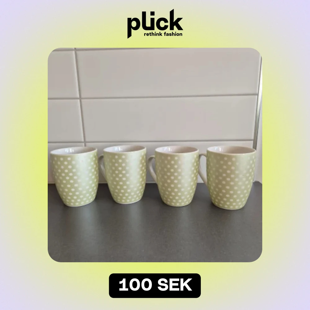 4 st koppar i grön pastellfärg, prickig. Hela, inga repor eller sprickor.