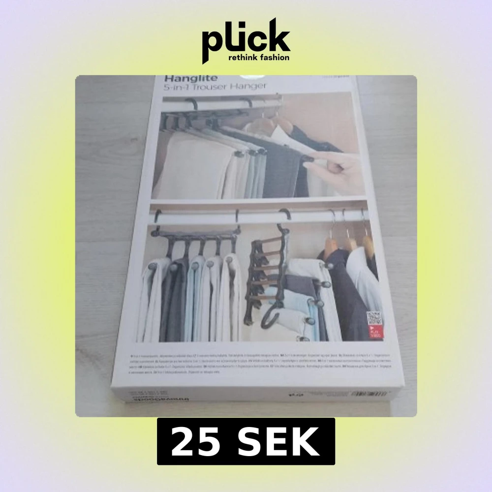 En organiserare till byxor, för att få ordning i garderoben, man rymmer 5 byxor.Häng upp byxorna snyggt. Horisontella och vertikal upphängning. Mått 47x18x6 cm, hopfällda 34x18x4 cm
