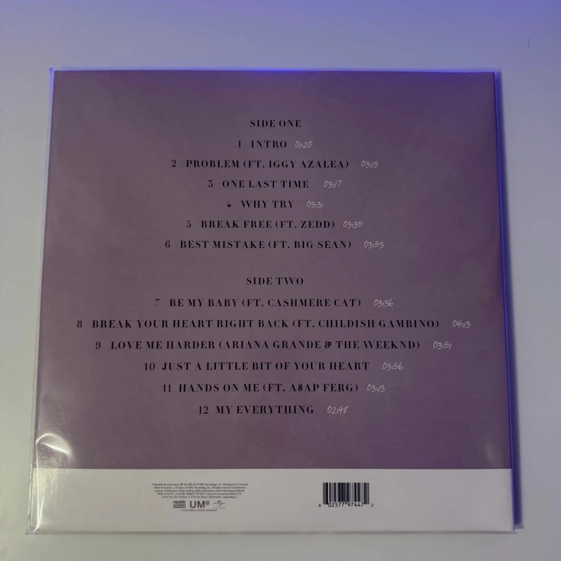 RARE!! Säljer en exklusiv och numera slutsåld vinyl av My Everything av Ariana Grande, i en unik halv clear och halv lila färg. Vinylen är importerad från USA och har aldrig spelats – endast öppnad för att kontrollera innehållet, men förvarad varsamt i en plastficka. Skicket är som nytt. Den här utgåvan är svår att få tag på idag och passar perfekt för dig som vill ha något unikt i din samling. Hör gärna av dig vid frågor. Kan gå ner i pris vid snabb affär!