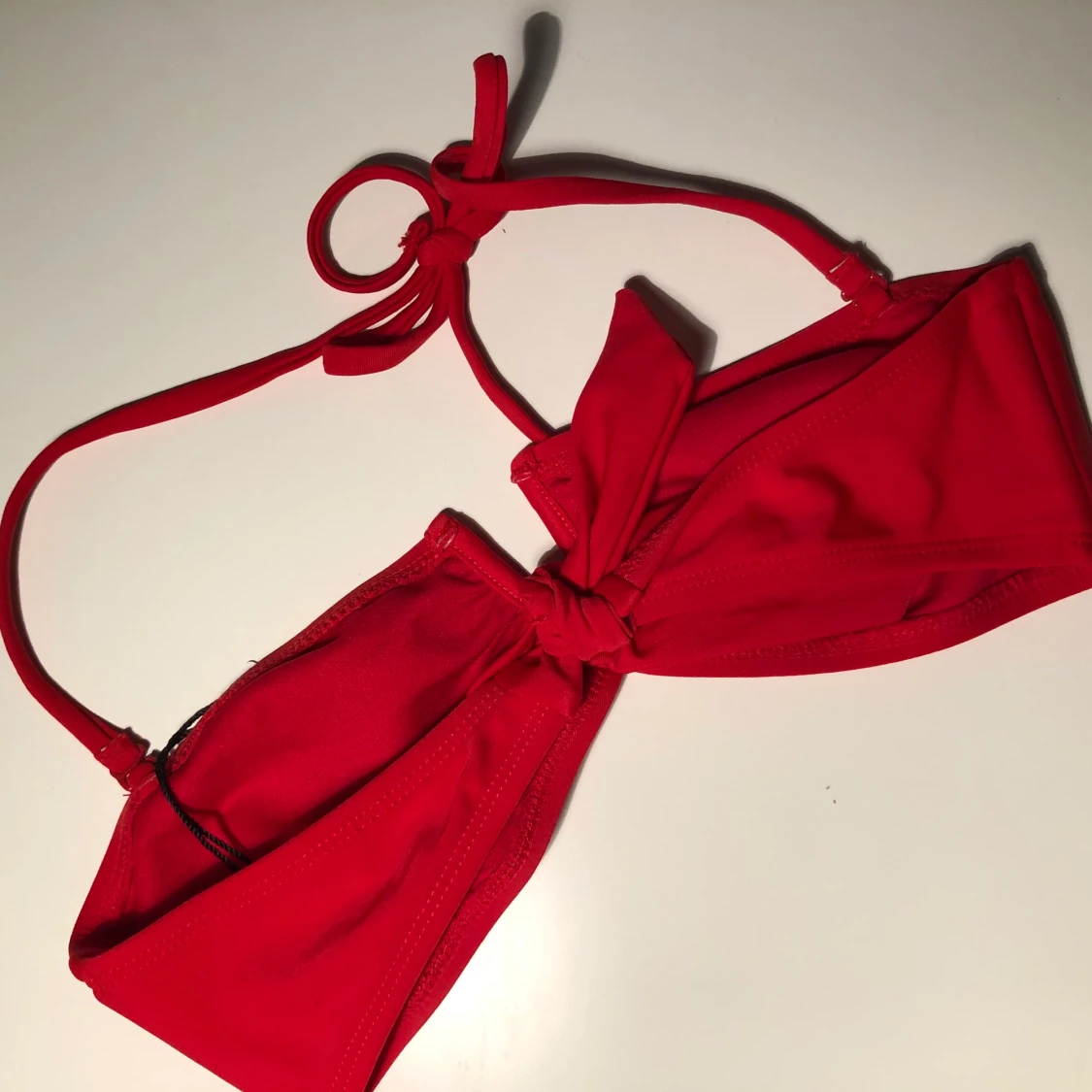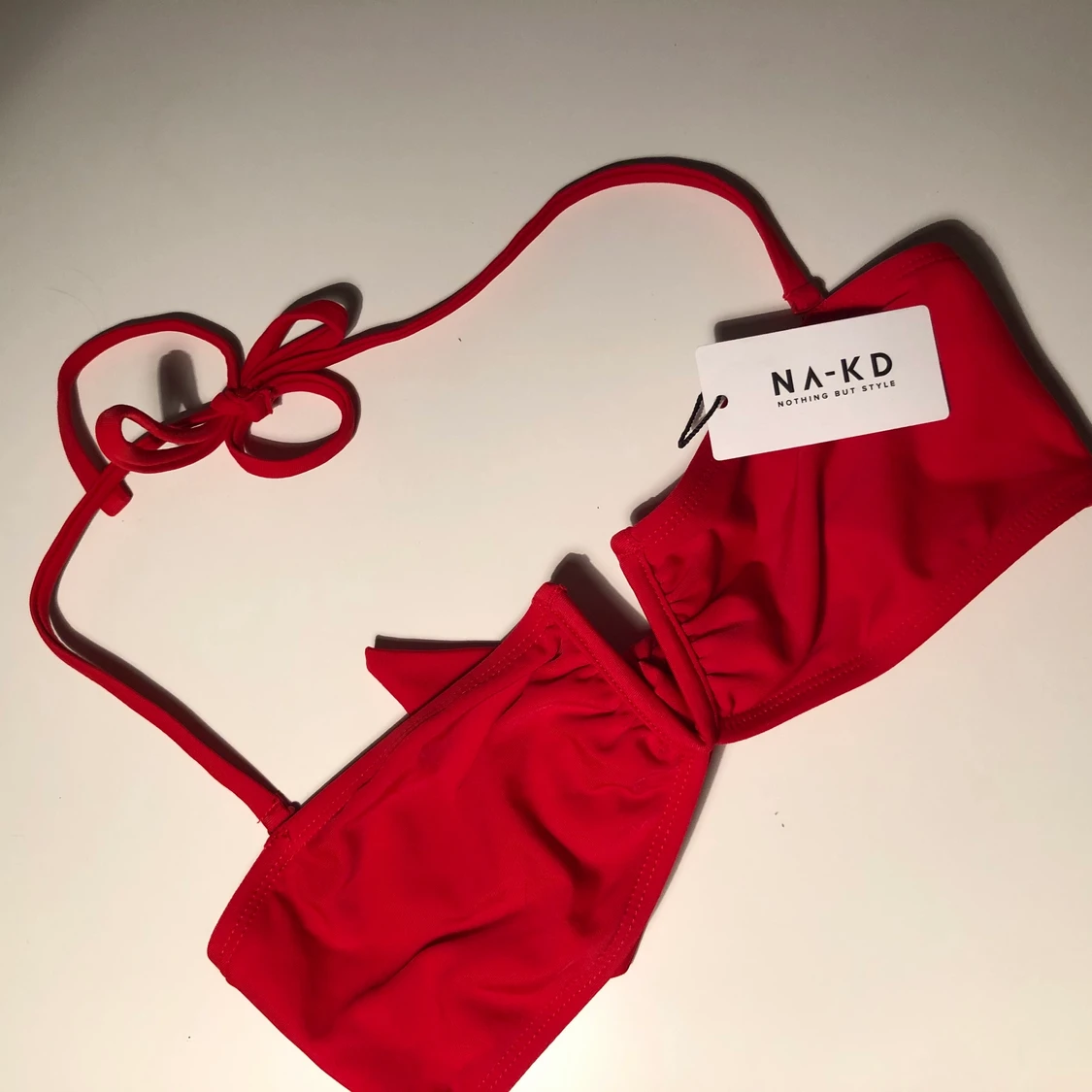Röd bikiniöverdel från Na-kd. Säljer pga att den aldrig kommit till användning, därav har den lappar kvar.
