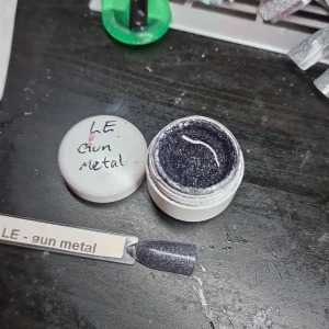 Säljer denna glitter gele från light elegance-gun metal uppskattningsvis 4-5ml kvar