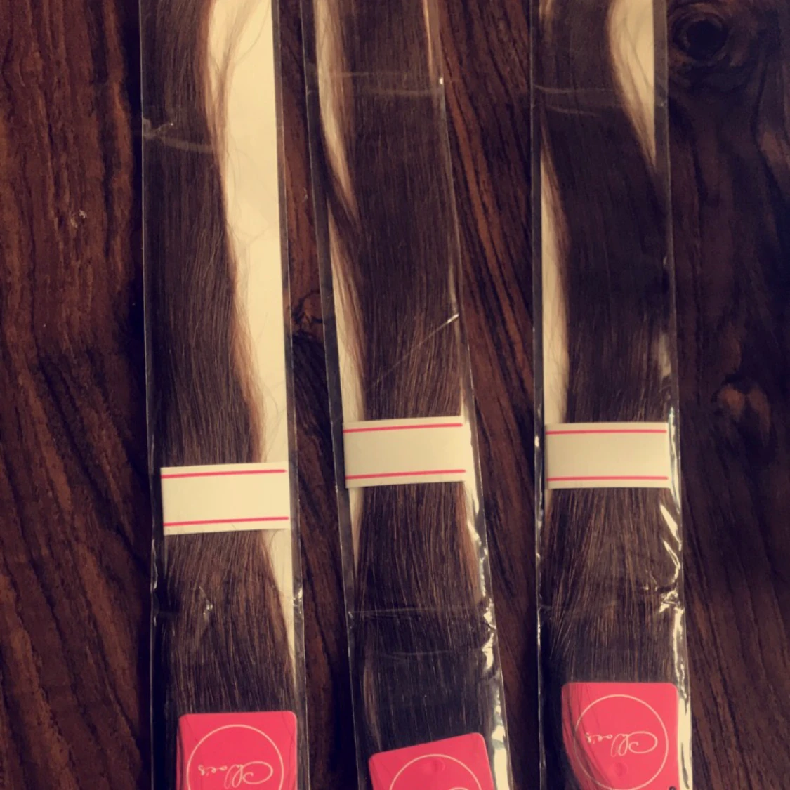 Håret på slingorna är 60cm långt och paketet. Paketet innehåller: 25 gram äkta hår uppdelat på 25 stycken löshårsslingor. 4 paket = 100 slingor 700kr, kan postas