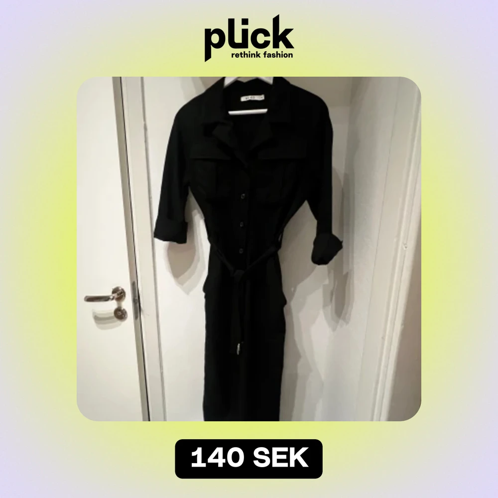 Svart jumpsuit från NA-KD med fickor uppe och nere Benen är något korta i modellen Samma modell som den beiga på bild 3