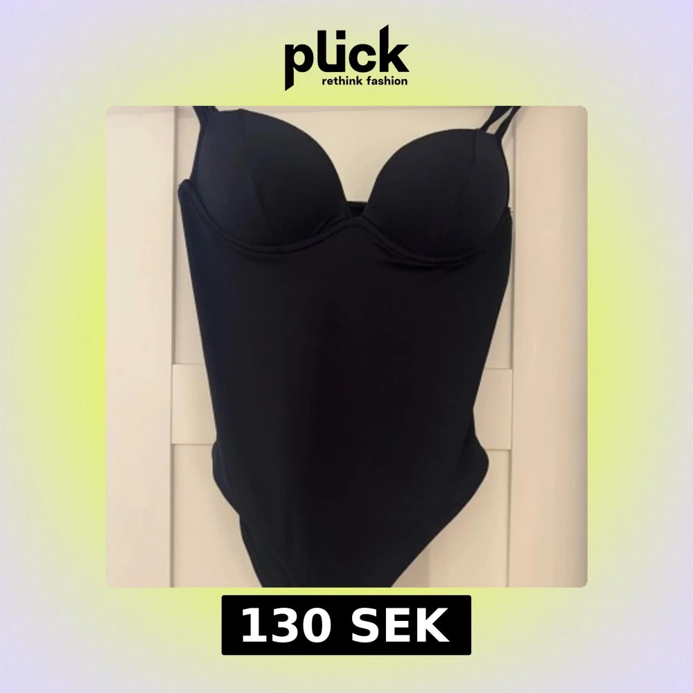 Snygg svart body från Missguided med vadderade kupor och smala axelband. Lik den slutsålda från H&M, passar XS/S beroende på din kupstorlek🤍🐆