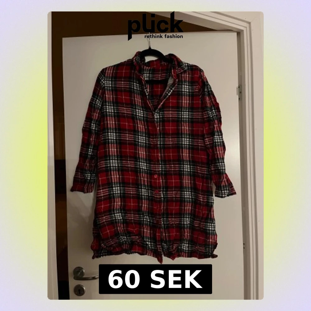 Rutig nattskjorta från Ellos i rött, svart och vitt. Långärmad modell med knappar framtill och krage. Fint skick!