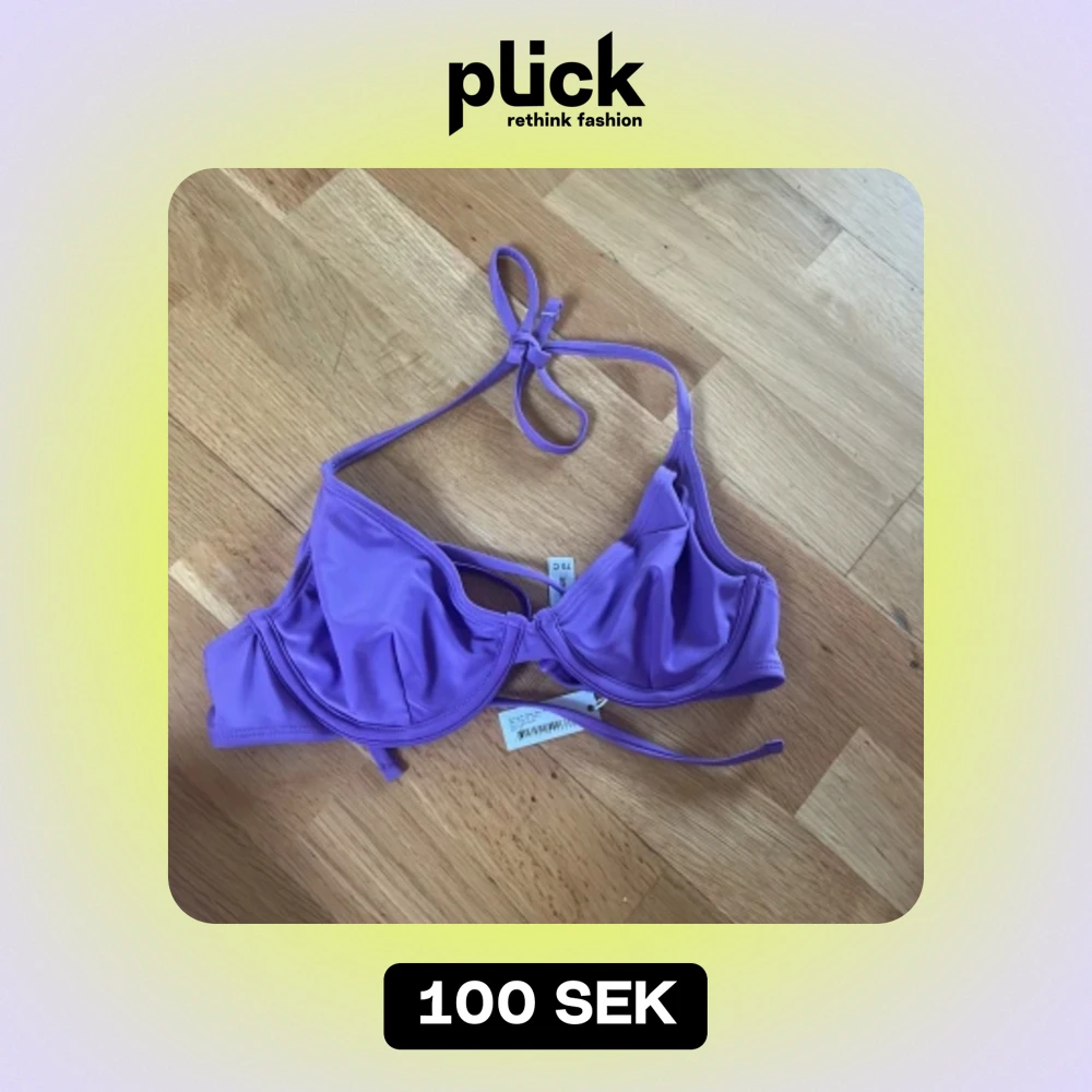 Oanvänd lila bikiniöverdel med lappen kvar. Väldigt liten i storleken.