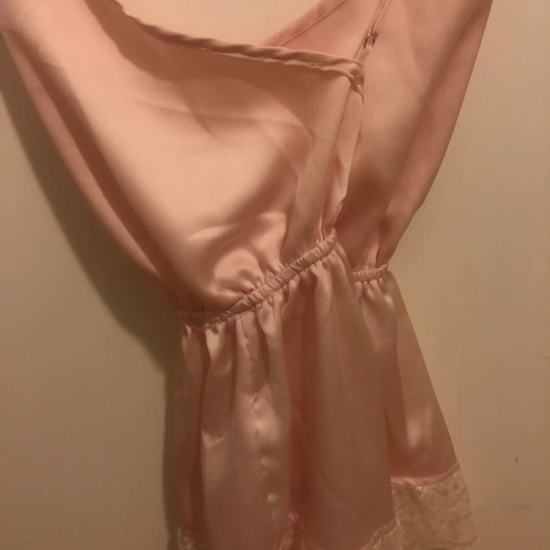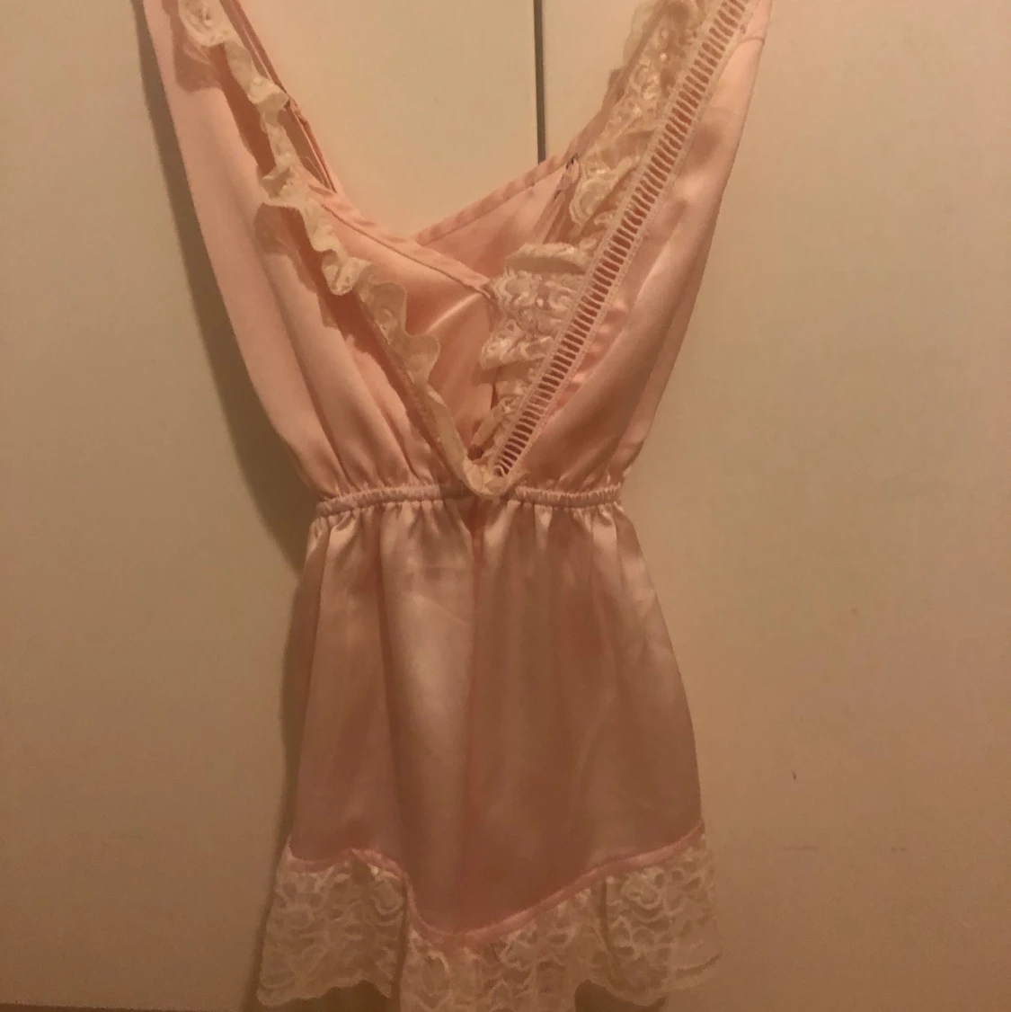 Säljer denna playsuit från Nelly, använd en gång. Babyrosa silkes material med spets på kanterna. Köparen står för frakten. Märke missguided. Korsad i ryggen