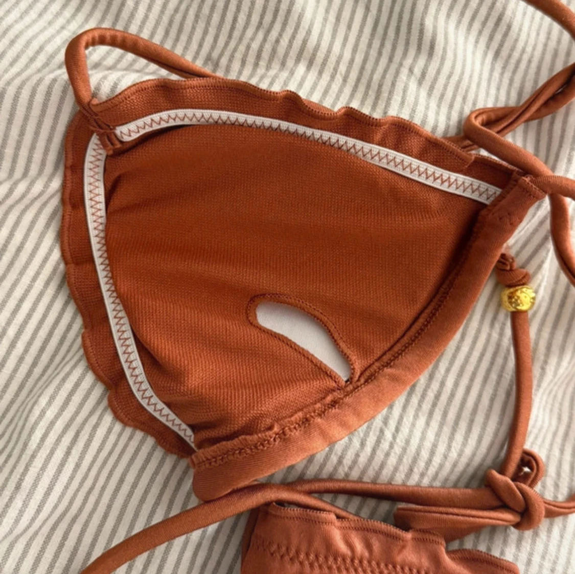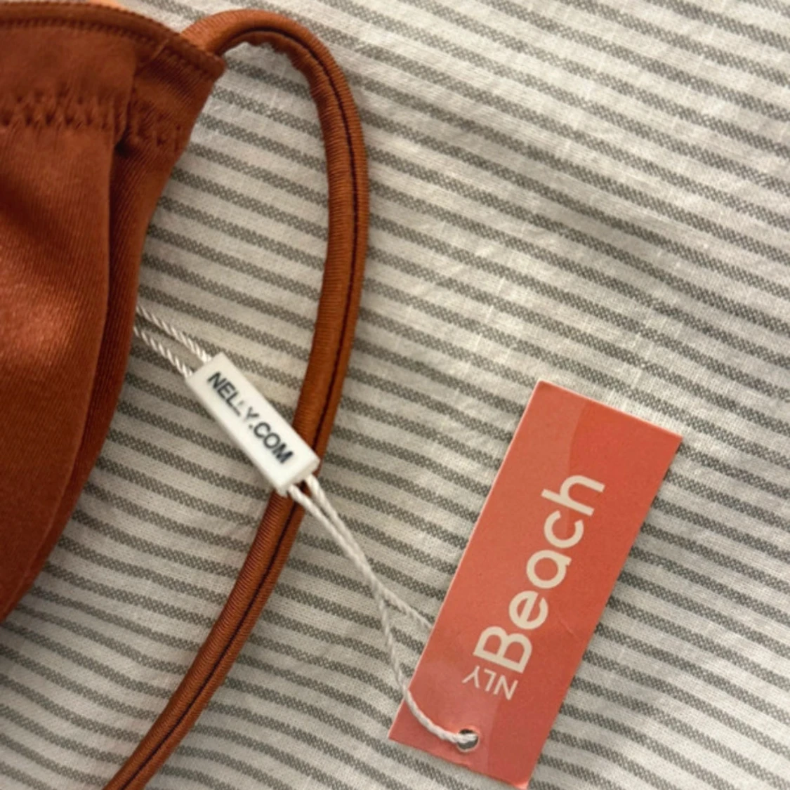 Jättefin oanvänd bikini överdel ifrån Nelly. Shimrigt tyg och guld detaljer. Brunaktig färg.