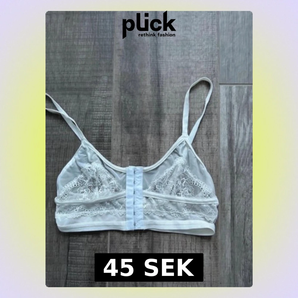 Säljer en vit bralette med tunna axelband och vackra spetsdetaljer framtill. Modellen har hakknäppning fram och är gjord i ett mjukt, transparent material med broderade blommor i spetsen. Perfekt för dig som gillar en feminin och stilren look.