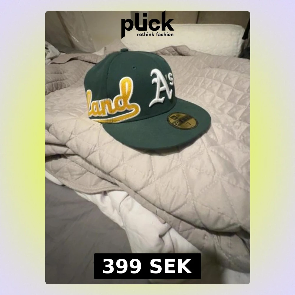 Säljer en grön 59FIFTY keps från New Era med Oakland Athletics broderat i vitt och gult. Klassisk rak skärm i grönt och detaljerad MLB-logga baktill. Kepsen är tillverkad i 100% polyester och har en snygg streetstil som passar perfekt till din outfit.