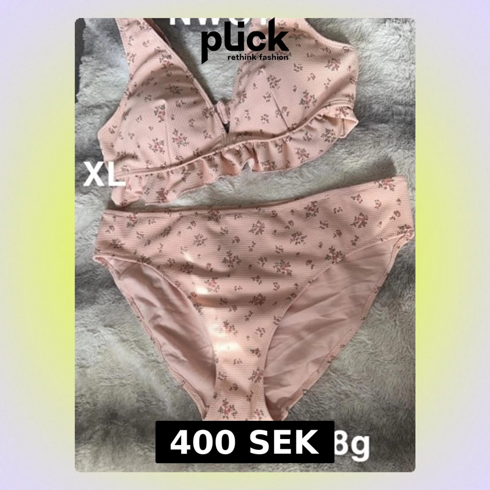 Söt bikini i ljusrosa med små blommor över hela tyget. Toppen har volangdetalj under bysten och vadderade kupor, medan trosan har en klassisk hög midja. Perfekt för strandhäng och poolparty.🌸Ny utan tagg. Bikini från Newbie woman. Nypris 650kr