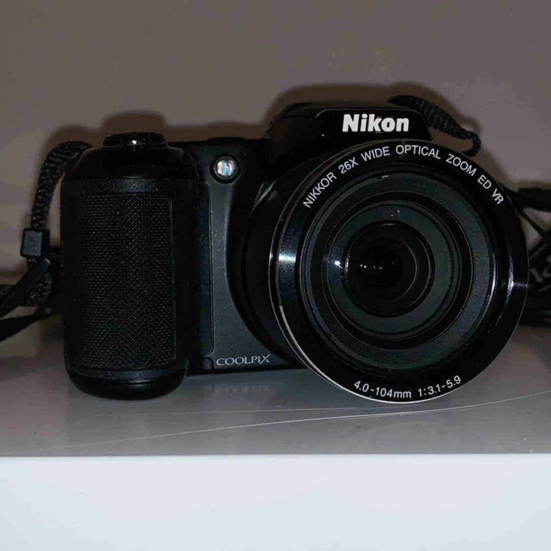 20-megapixelkamera. 26x optisk zoom. LCD-skärmen på 7,5 cm 18 motivtyper. Drivs av 4 AA-batterier. Linsskydd medföljer. Halsrem medföljer. USB kabel medföljer.