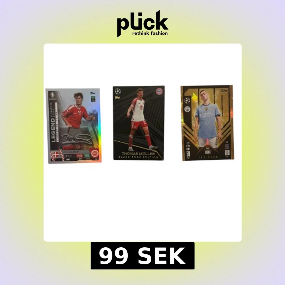 Samlarpaket med tre exklusiva fotbollskort: Brian Laudrup (Legend), Thomas Müller (Black Edge Edition) och Phil Foden (100 Club). Perfekt för unga fotbollsfans och samlare som vill boosta sin Match Attax-kollektion med stjärnspelare och unika kort.Man får också ett Thierry HENRY med på köpet. Med vänlig hälsning, Valter. 😊