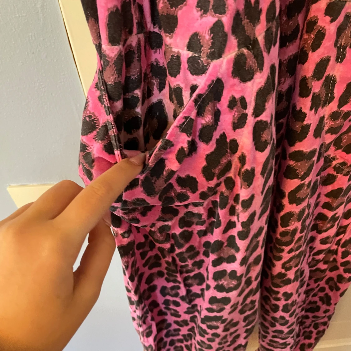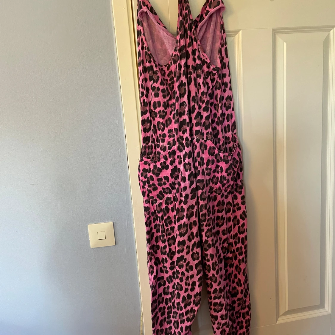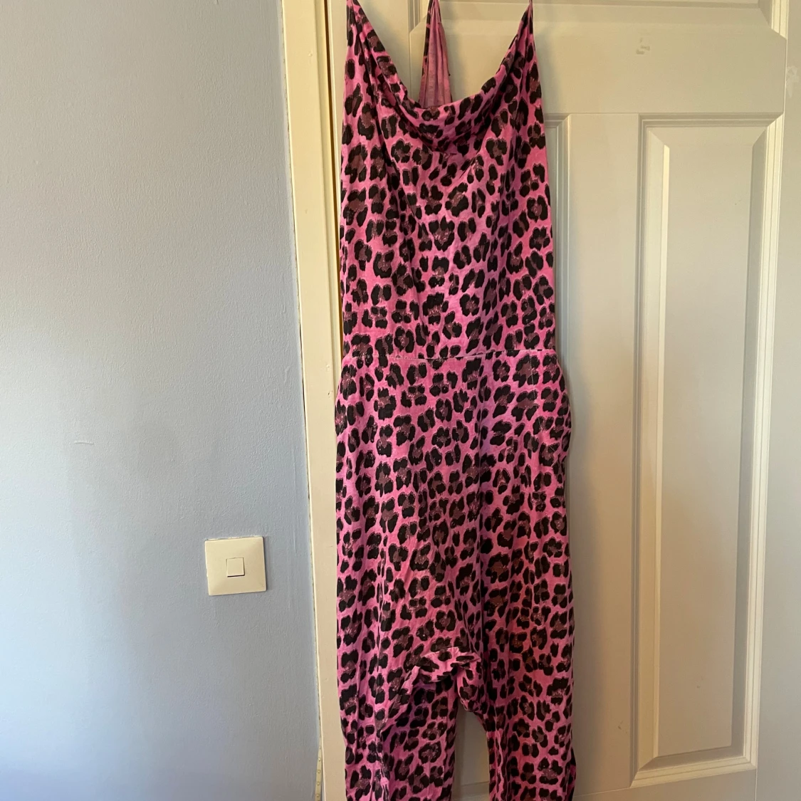 Säljer en rosa jumpsuit från Love Forever med svart leopardmönster. Modellen har tunna axelband, djup urringning och stora fickor på sidorna. Mjuk och stretchig bomullskänsla, perfekt för dig som vill sticka ut med färg och mönster.