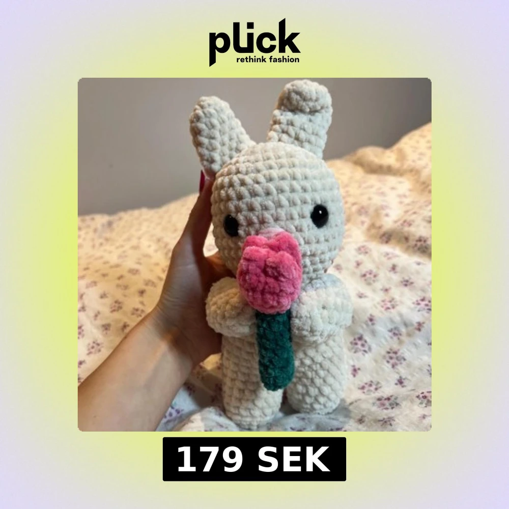 Testat nytt mönster denna gången och gjort en vad jag kallar ”tulpan-kanin”. Huuur söt? Hoppas på att kunna göra i fler färger sen men denna är beige med rosa blomma🤩🤍🩷 !Dessa innehåller säkerhetsögon som inte rekommenderas för barn under 3 år!