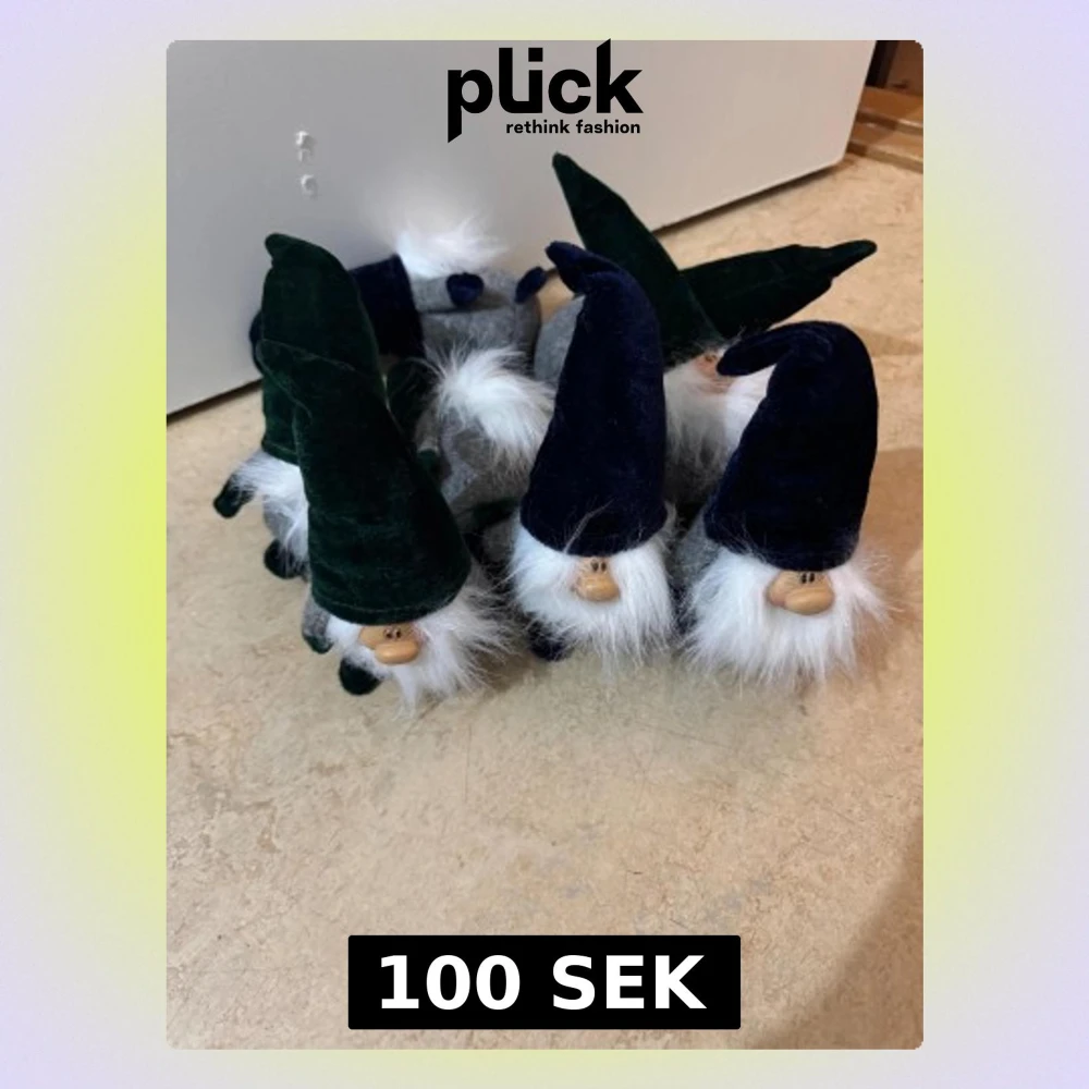 8 st dekorations tomtar i mörk blå och grön, 4 st av varje färg, säljs för 100 kr.