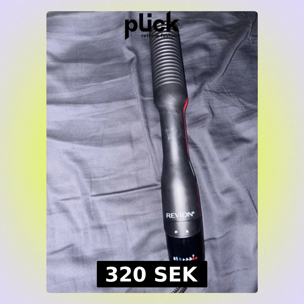 Säljer en svart hårstyler från Revlon med ergonomiskt handtag och flera värmeinställningar. Verktyget har en cylinderformad borste med räfflad yta och tydliga reglage för olika temperaturer. Perfekt för styling och volym.