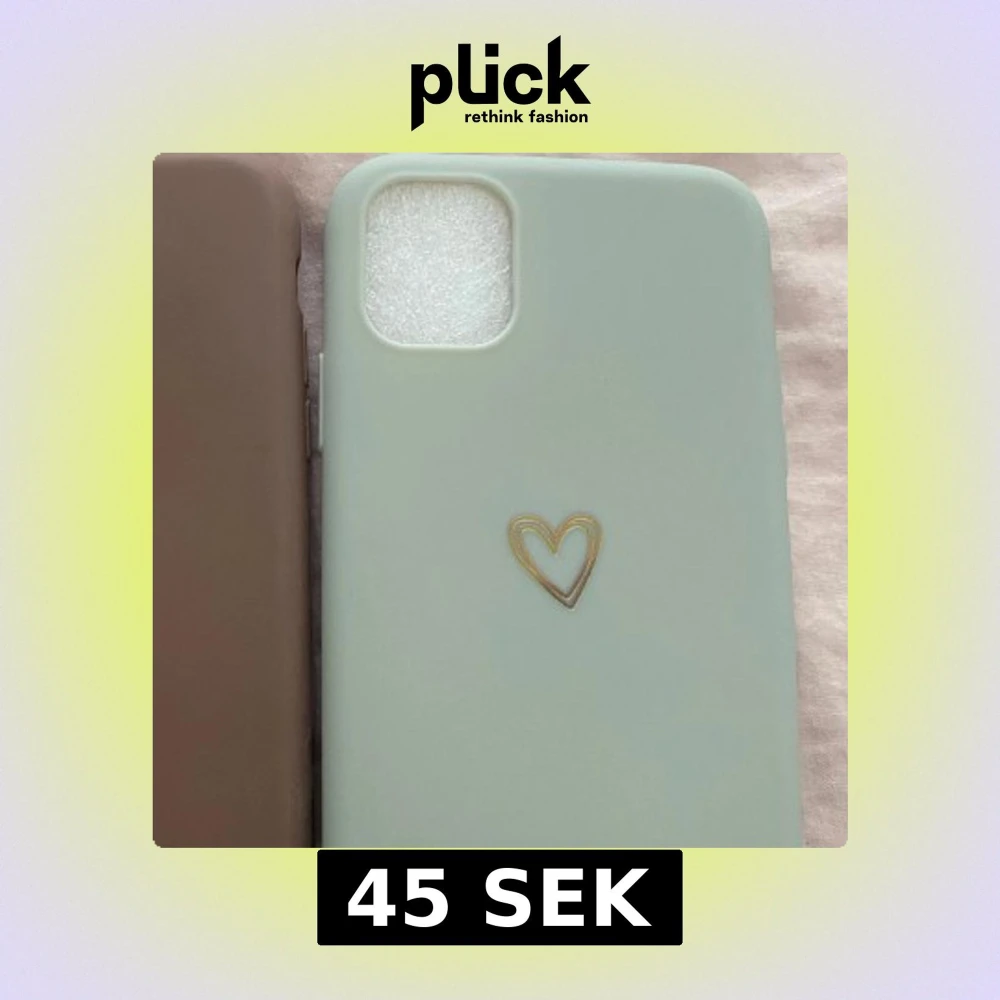 Snyggt silikon mobilskal från Shein i en mjuk grön färg med en stilren hjärtdetalj i guld. Passar iPhone 11 helt oanvänd