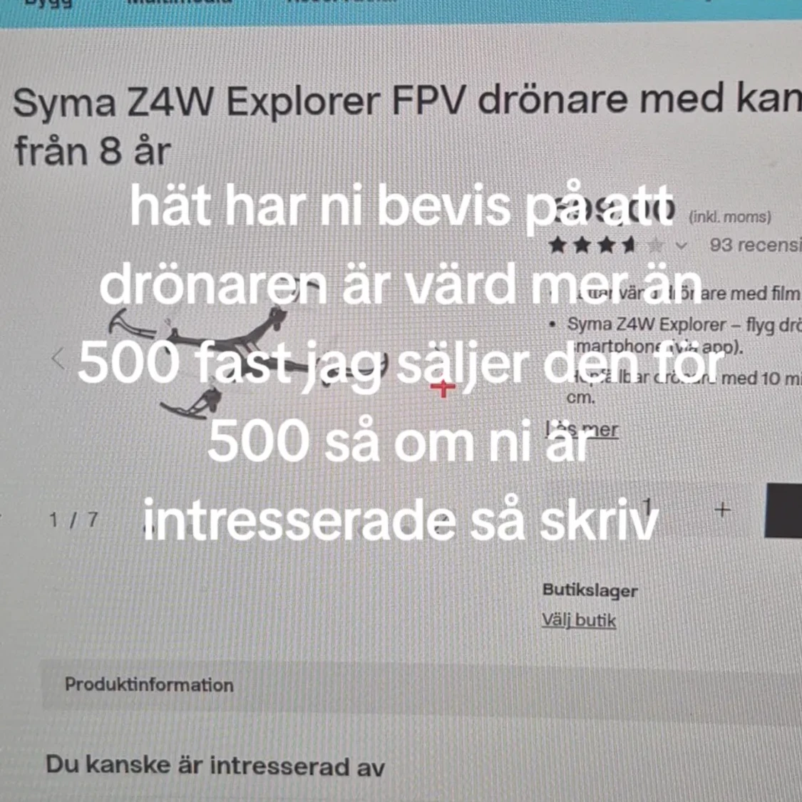 Säljer en Syma Z4W Explorer FPV drönare med kamera, perfekt för nybörjare från 8 år. Drönaren har en stilren design med fyra rotorblad och är utrustad med FPV-funktion för realtidsvideo. Ett bra val för den som vill utforska drönarflygning till ett överkomligt pris.