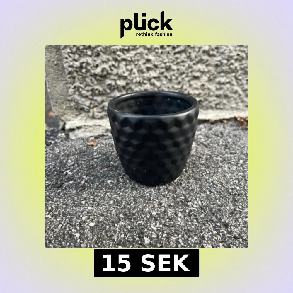 Svart liten kruka, diameter: 7,5cm, höjd: 7cm.