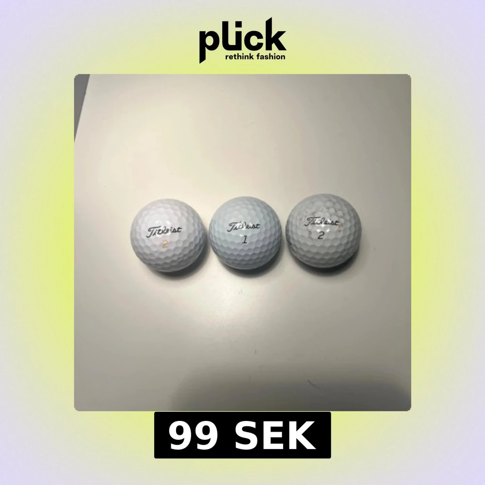 Bilderna visar tre golfbollar av märket Titleist, med siffrorna 1 och 2. En av bollarna har tydligt slitage och missfärgning. Detta är inte en elektronikprodukt och passar inte in i någon av de angivna taxonomierna.