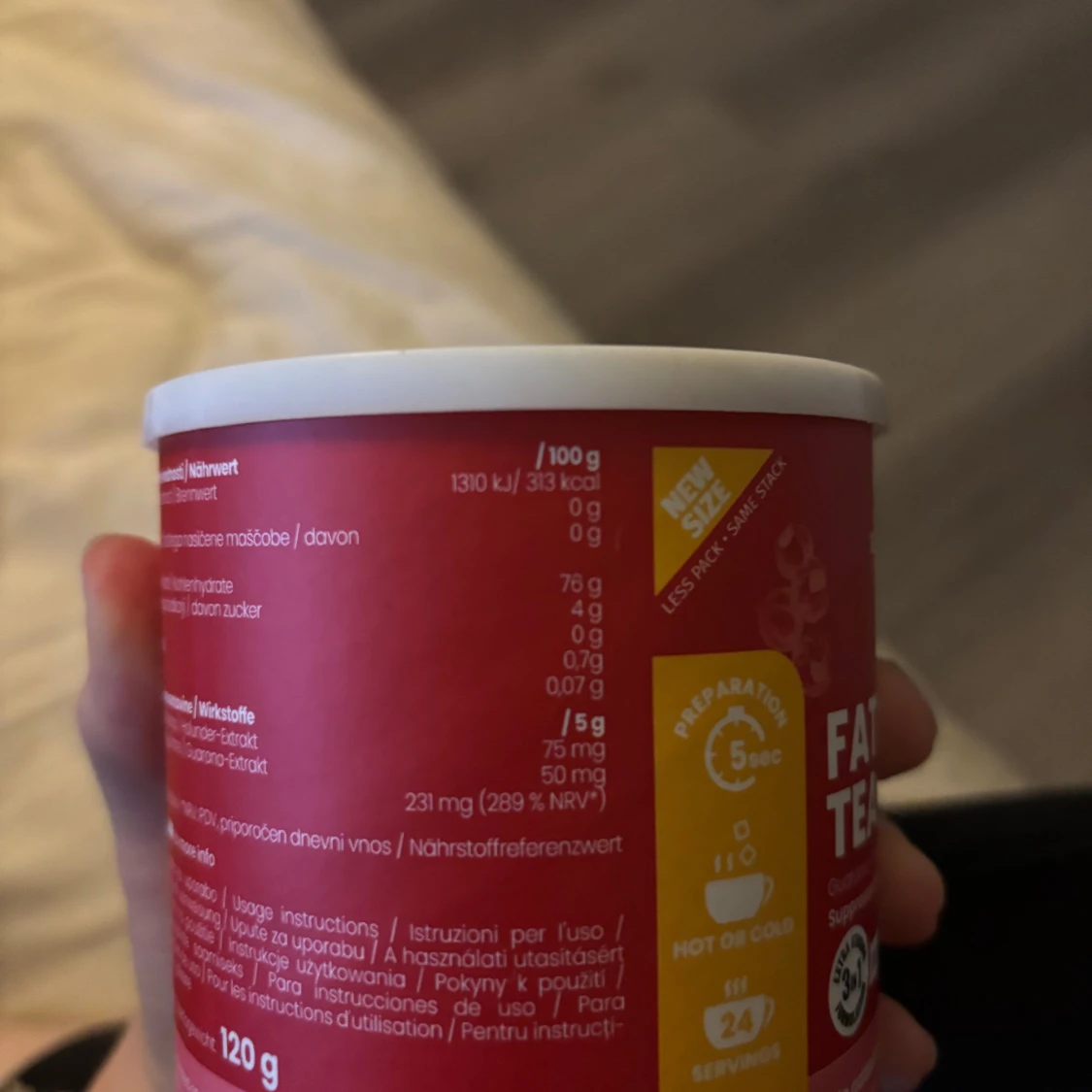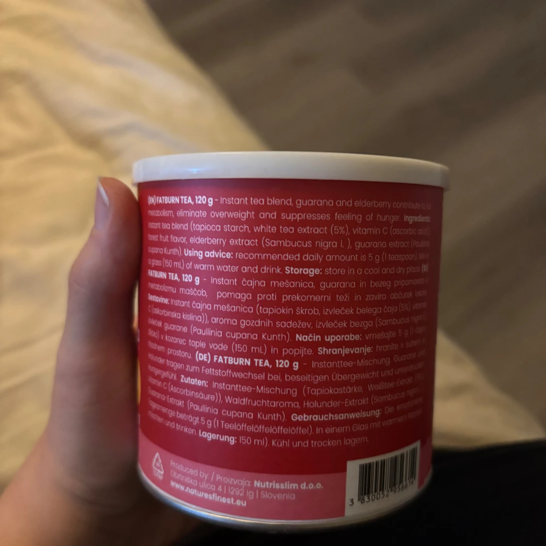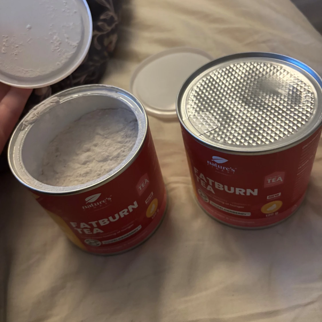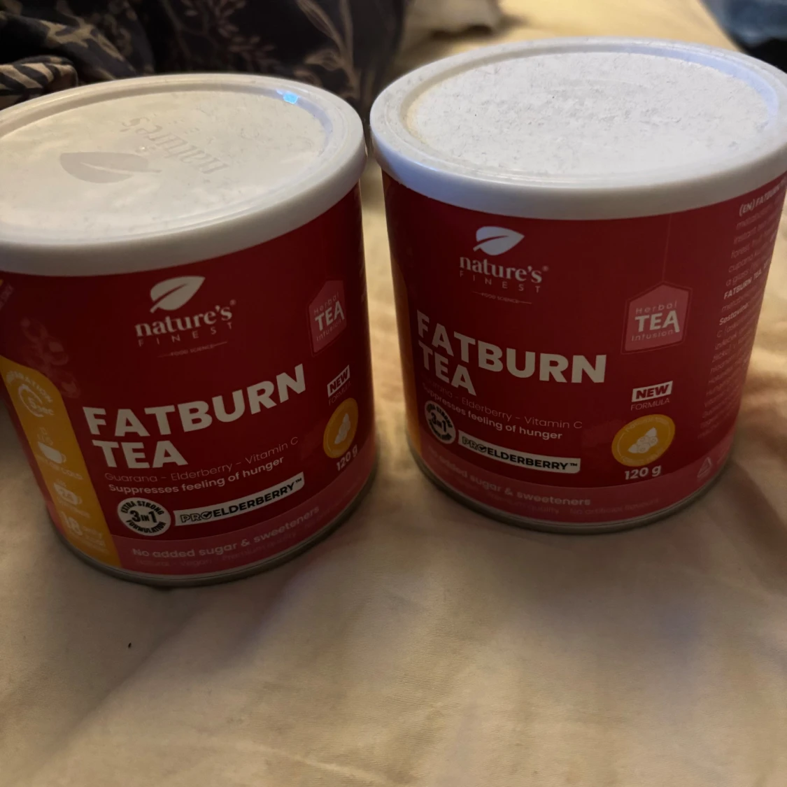 Nature's Finest Fatburn Tea, 120g, med guarana, fläderbär och vitamin C. En burk är öppnad och endast taget ur för ett glas/kopp, den andra är oöppnad. Inga synliga skador på förpackningarna.