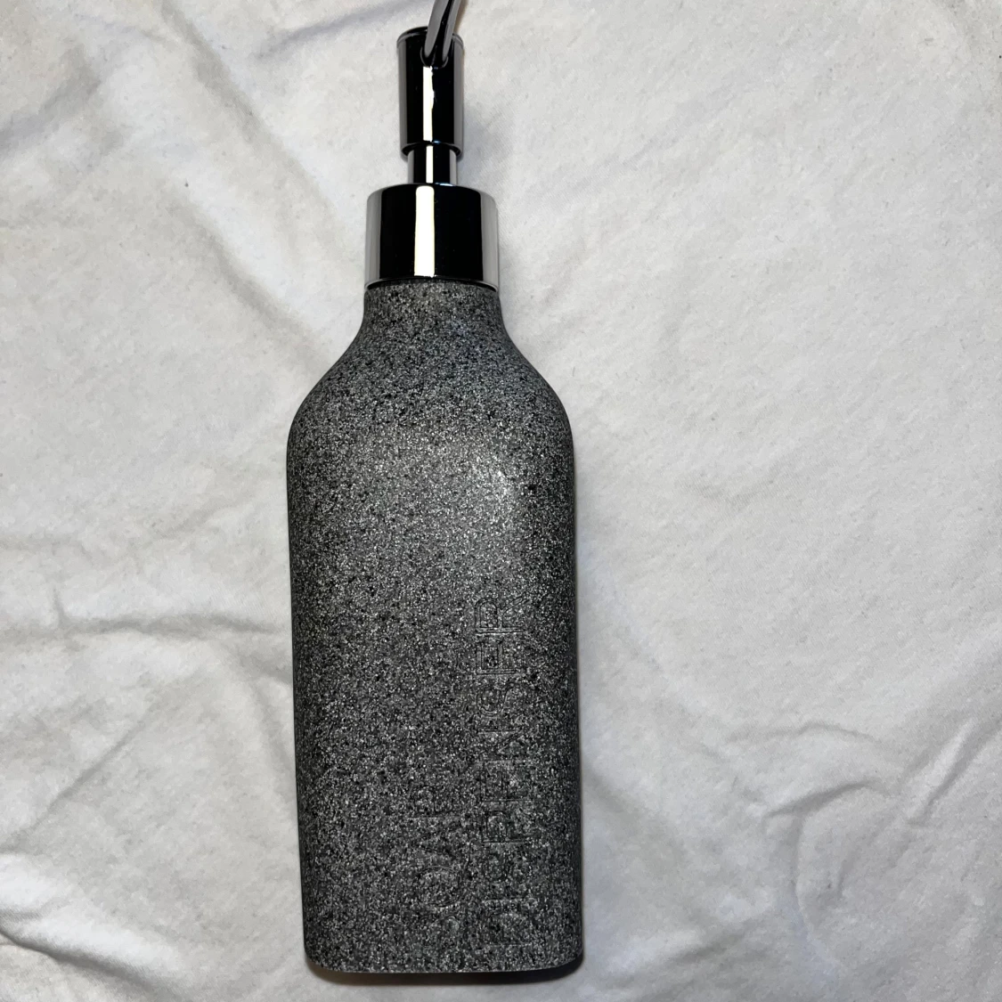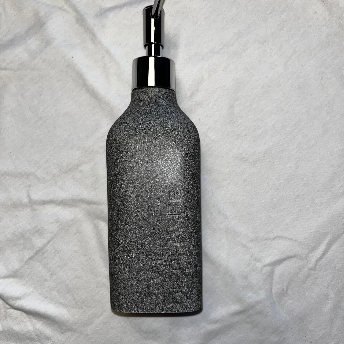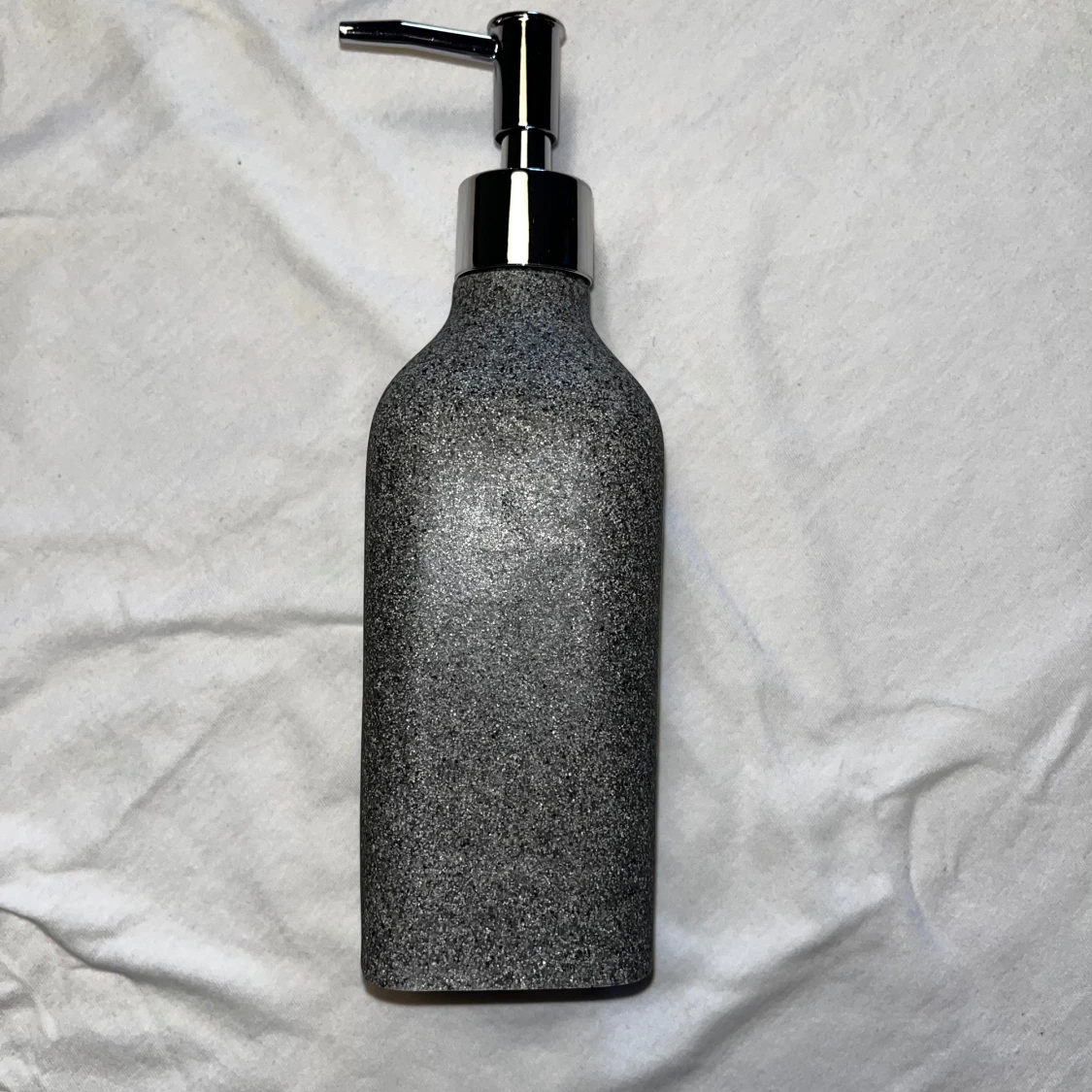 Helt ny tvålpump i grått stenliknande material med metallisk pump. Passar för badrum eller kök. Säljes då den inte kom till användning. Djur och rökfritt hem.