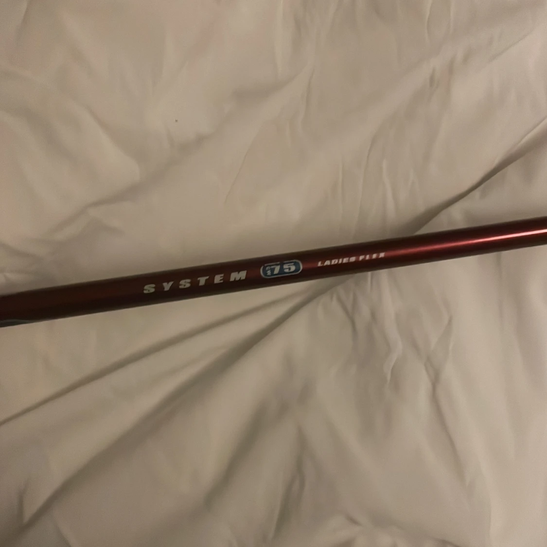 Callaway Big Bertha System 75 driver med Ladies Flex. Snyggt rödblått skaft och lila klubbhuvud. Greppet ser fräscht ut och klubban är i gott skick, perfekt för damgolfare som söker en lättspelad driver.