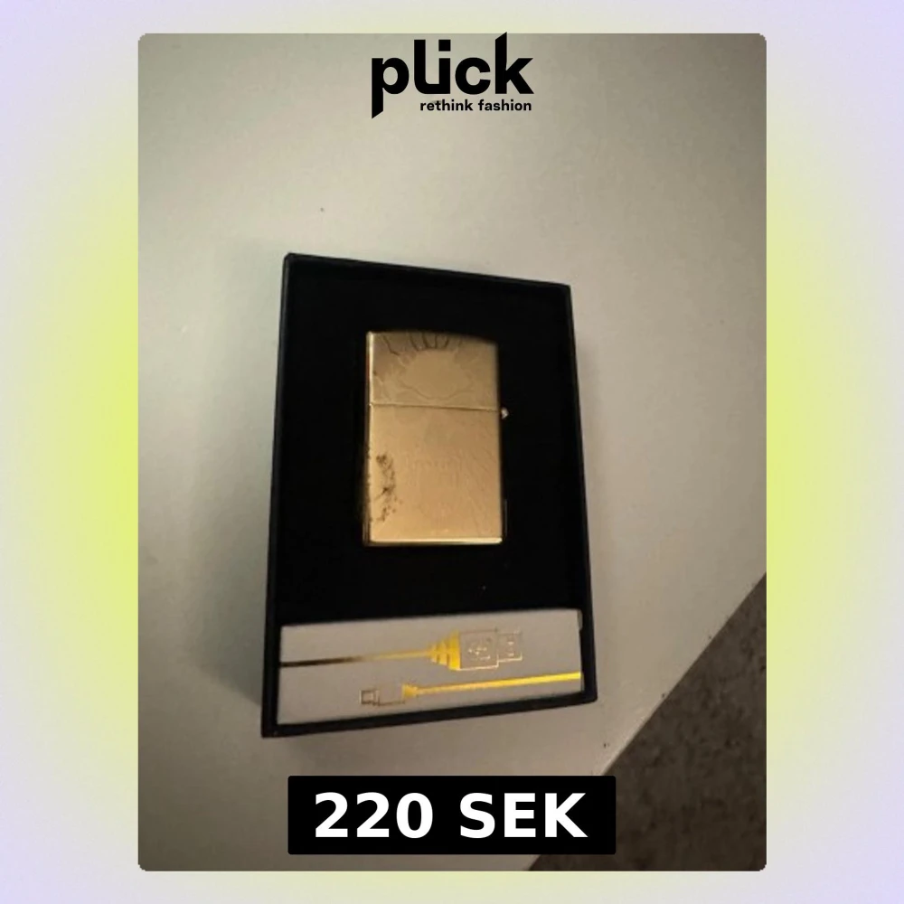 Säljer en guldfärgad USB-tändare i metall med solmönster på framsidan. Tändaren kommer i en svart presentask tillsammans med en laddningskabel. Perfekt för dig som vill ha en stilren och laddningsbar tändare. Pris kan diskuteras