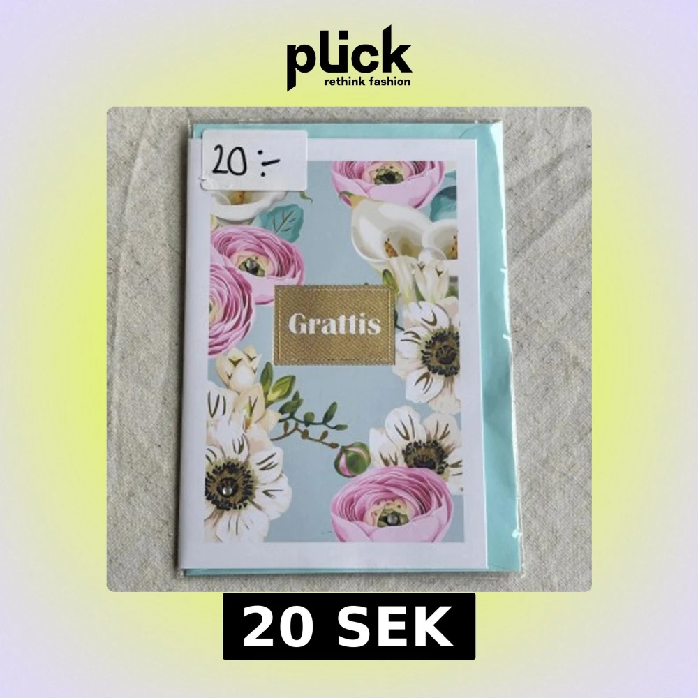Ett stilrent och färgglatt gratulationskort med blommotiv. Medföljer kuvert samt den är kvar i sin ursprungliga förpackning. Insidan består av helt vita blad så plats för mycket text