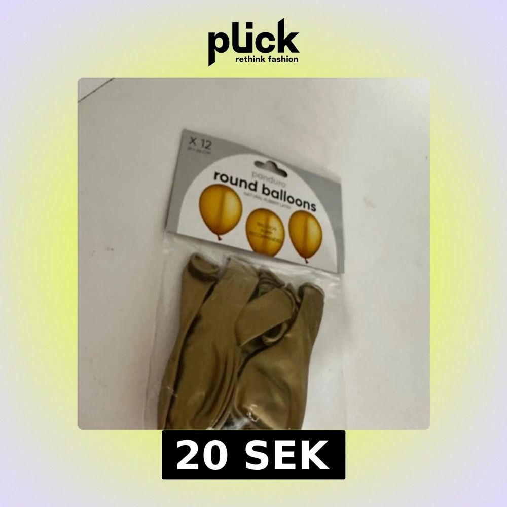 Oöppnad förpackning med 12 runda guldiga ballonger från Panduro. Tillverkade av naturlig latex, diameter 26-30 cm. Perfekta för fest och dekoration. Förpackningen är i nyskick utan synliga skador eller slitage.