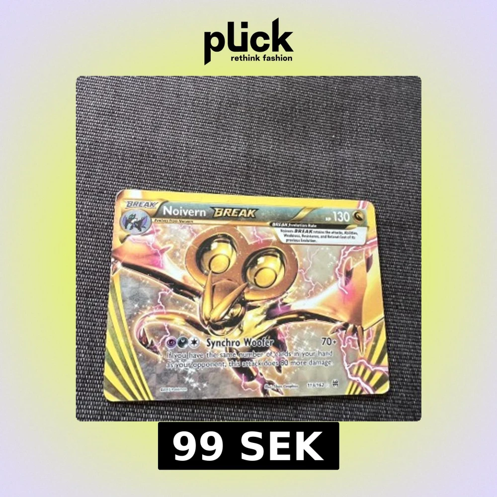 Säljer ett Noivern BREAK Pokémonkort med holografisk yta. Kortet har guldfärgade detaljer och motiv av Noivern i en elektrisk design. HP 130 och attacken Synchro Woofer. Perfekt för samlare eller Pokémonfans.