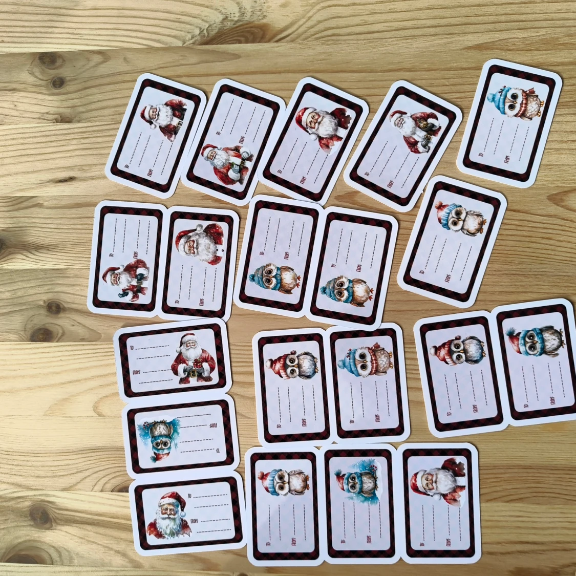 20 st Roliga och färgglada julklappsetiketter med motiv av söta ugglor och klassiska tomtar. Perfekt för att göra dina julklappar extra personliga och festliga! Passar dig som gillar kreativa detaljer och vill sätta en unik touch på dina presenter.