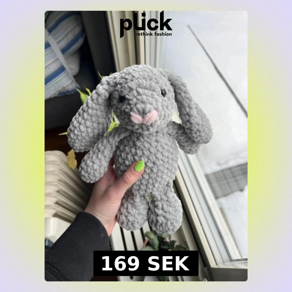 Har haft ett långt uppehåll på dessa kaniner men nu kommer en liten omgång av dem!🐰Här är en virkad ljusgrå Jellycat-kanin med ljusrosa nos.🩶🌸🐰