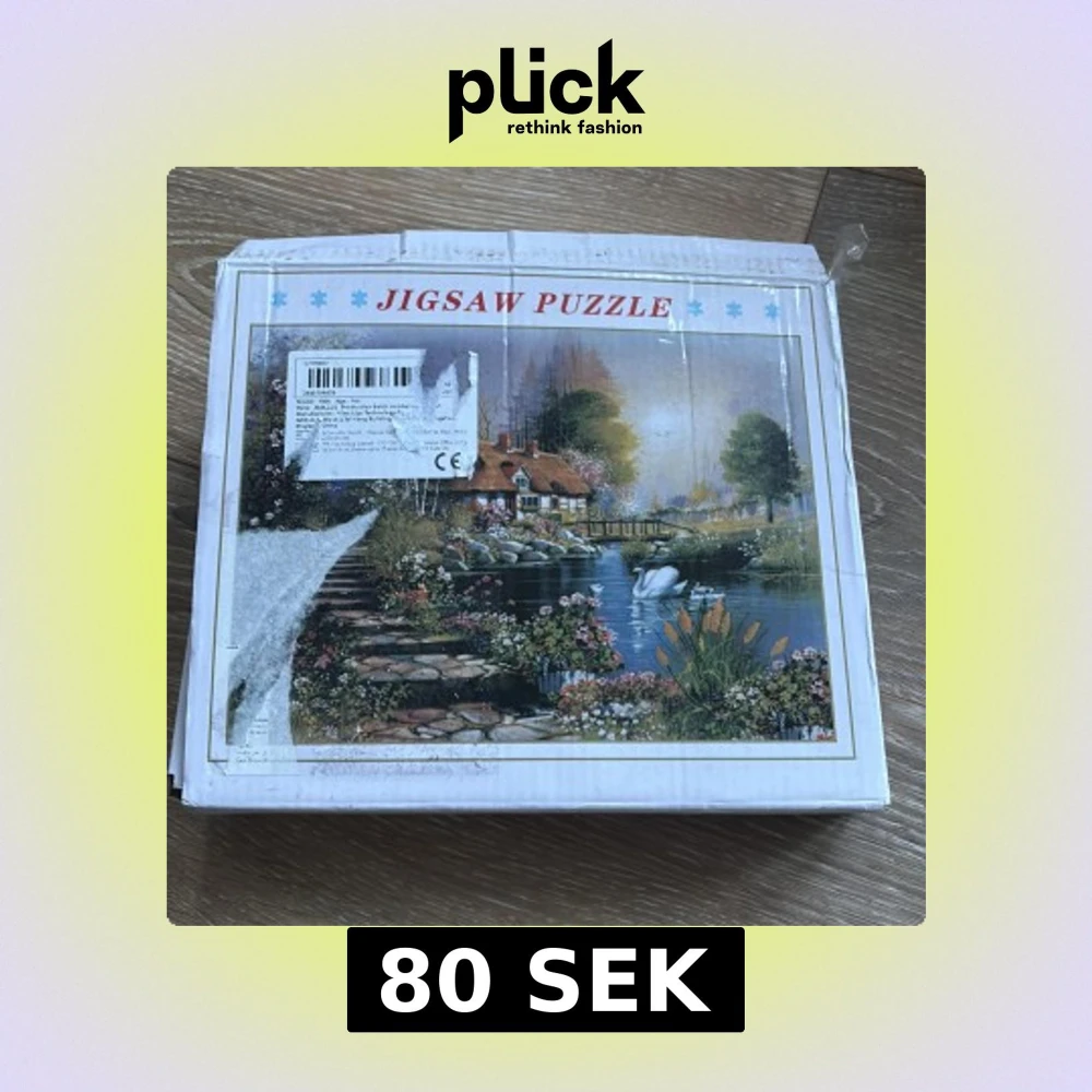 Ett vackert pussel med ett idylliskt landskapsmotiv som visar en stuga vid en sjö med svanar och en stenlagd stig. Perfekt för pusselentusiaster som gillar natur och avkopplande motiv. Pusslet är använt endast en gång och är helt komplet, ingen bit saknas. Förpackningen är trasig men pusselbitarna är hela.