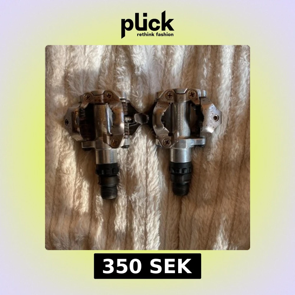 Två stycken Shimano SPD-pedaler i metall, modell PD-M520. Pedalerna är begagnade med synlig rost och slitage, men mekaniken ser ut att vara intakt. Passar cyklar med SPD-system och är idealiska för MTB eller pendling. Perfekt för dig som söker prisvärda och robusta pedaler.