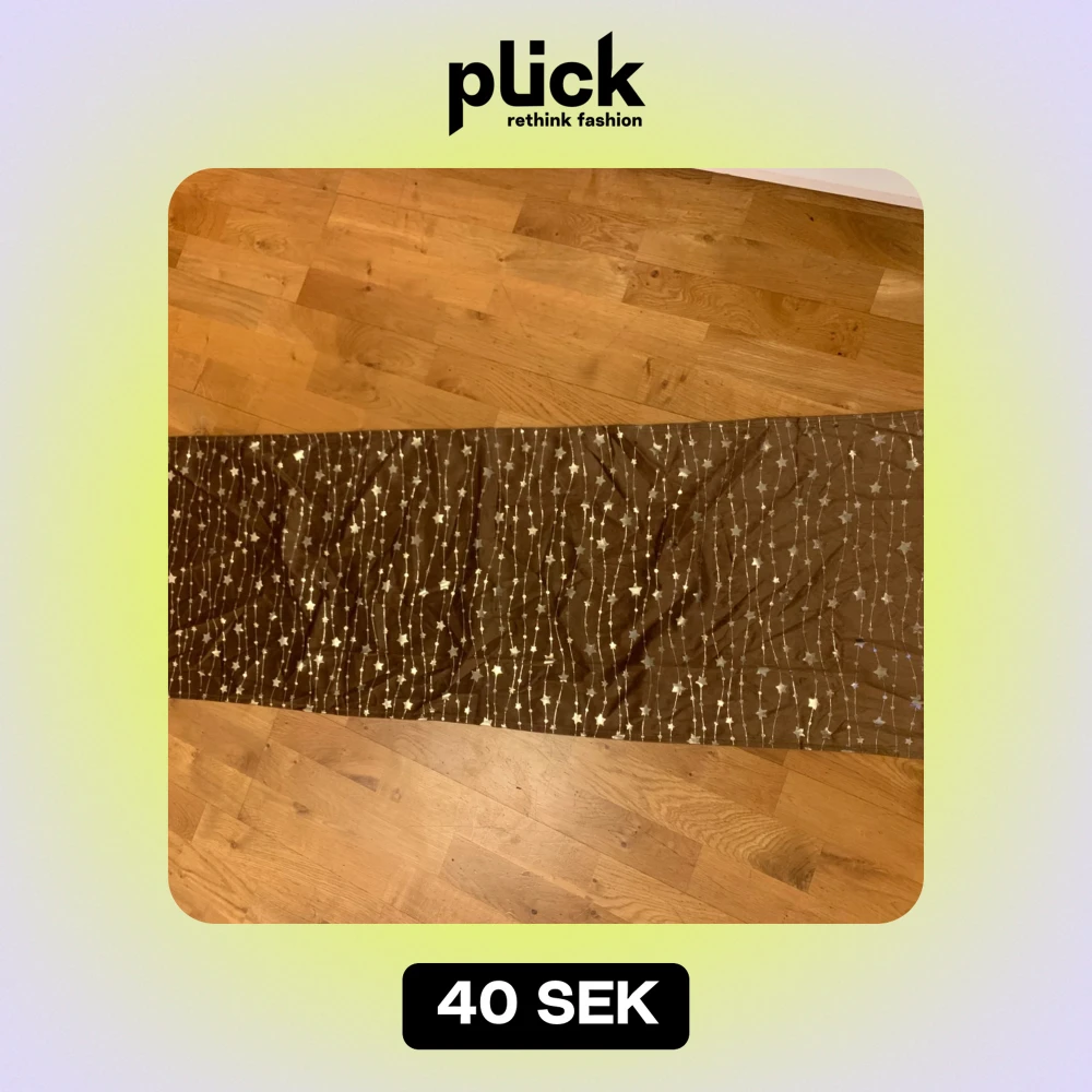 Säljer en superfin brun bordsduk med glittrigt stjärnmönster. Den är 45x150 cm och gjord av 100% polyester. Perfekt för att liva upp en outfit med lite stjärnglans!✨