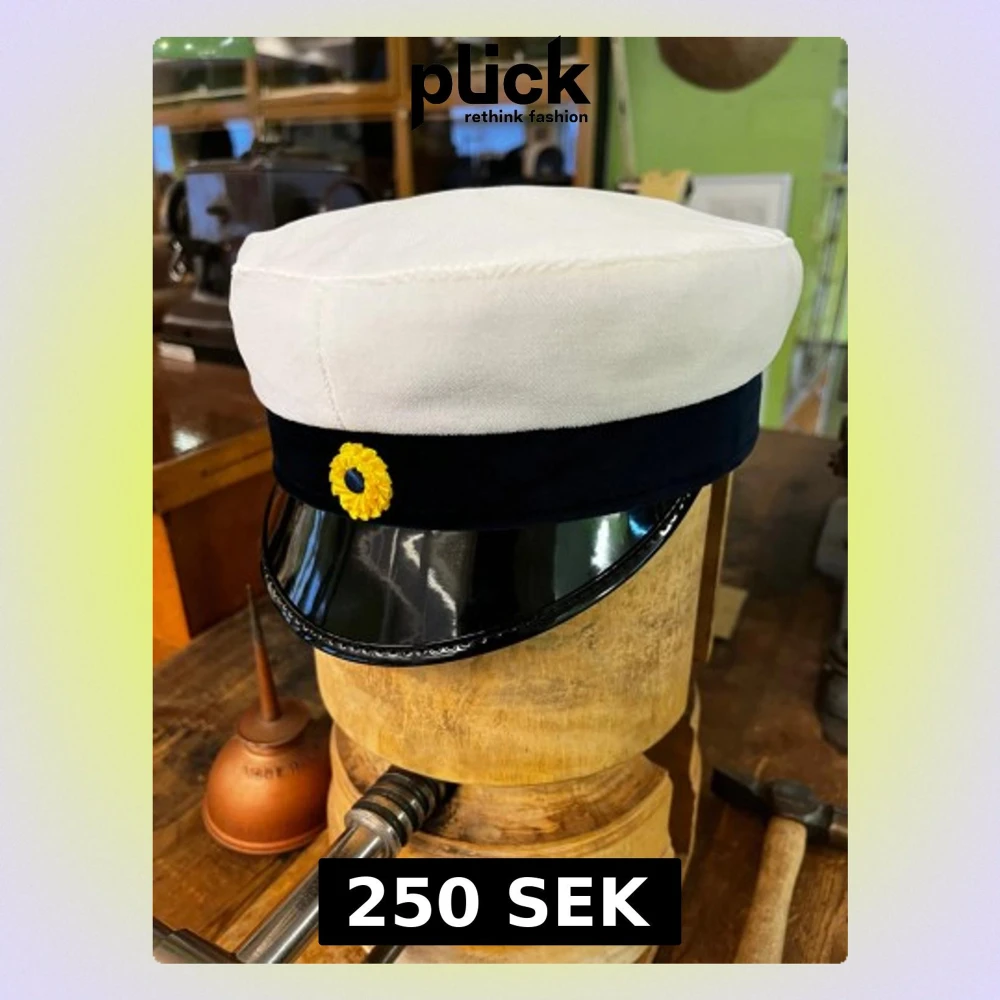 Säljer en klassisk studentmössa från CTH med vit ovandel i bomull, blått band och blank svart skärm. Mössan har gul och blå kokard framtill och röd insida. Perfekt för studenten och ikonisk svensk tradition. Kontakta oss gärna innan köp för Storlek men som önskas