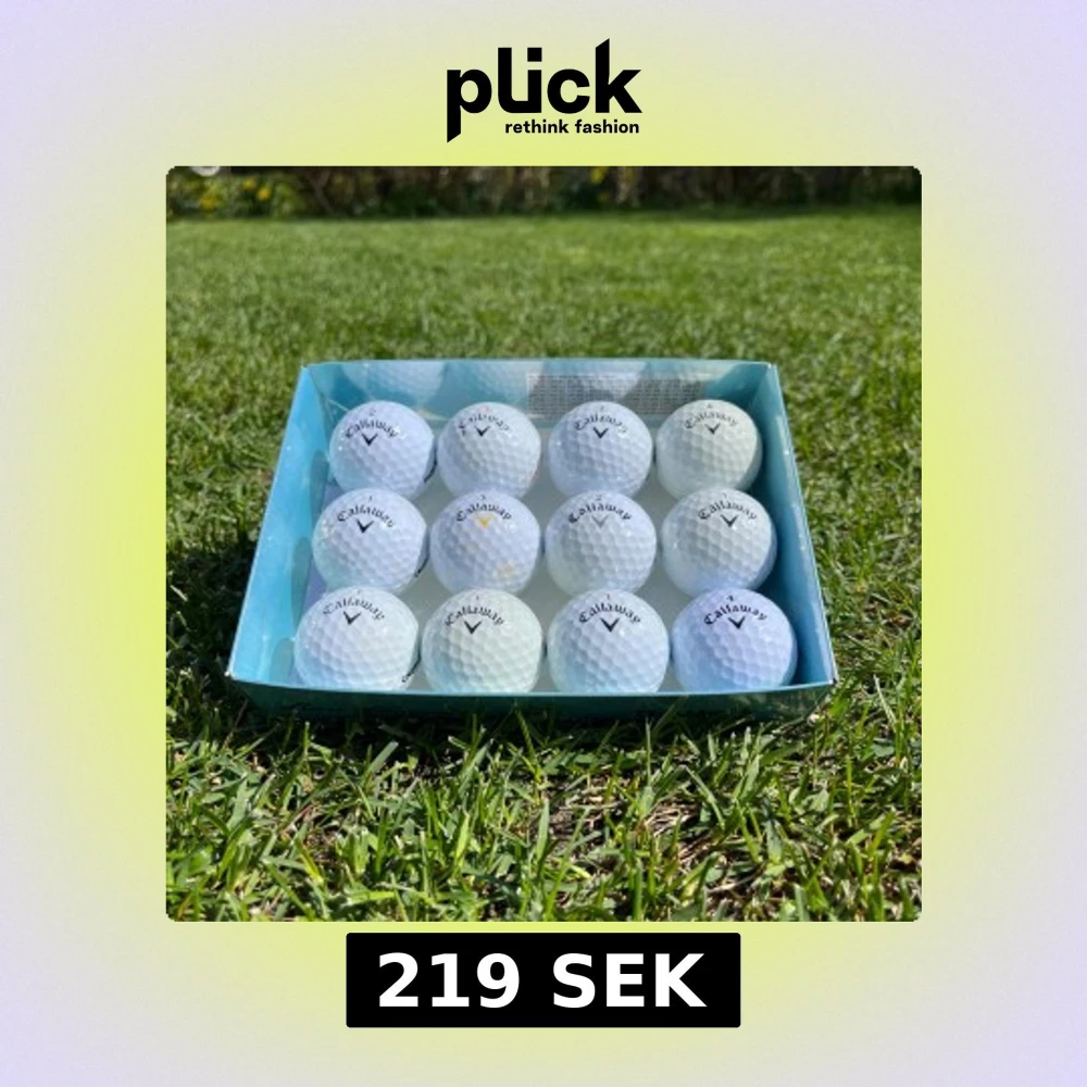 Säljer en ask med tolv vita golfbollar från Callaway. Bollarna har klassisk dimple-design och är perfekta för säsongen. Perfekt för dig som vill fylla på golfutrustningen.