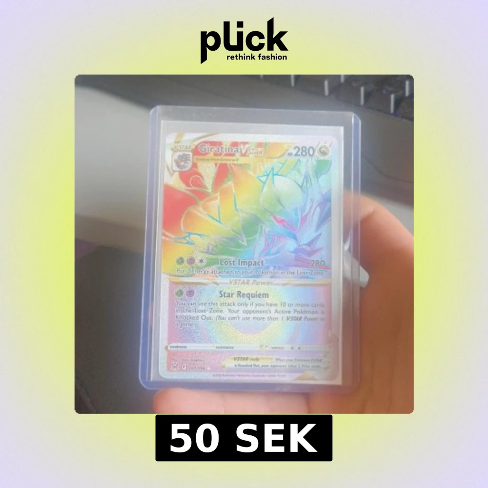 Säljer ett Giratina VSTAR Pokémonkort med regnbågsglans. Kortet har 280 HP och inkluderar attackerna Lost Impact och Star Requiem. Perfekt för samlare eller spelare som vill förstärka sin kortlek med en kraftfull VSTAR-kort.