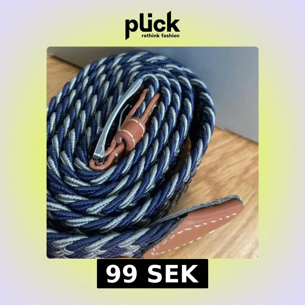 Snyggt flätat bälte i marinblått och grått med bruna läderdetaljer och silvrigt spänne. Perfekt accessoar för att lyfta din outfit med en sportig och stilren touch. Bältet har en cool struktur och passar till både jeans och chinos.