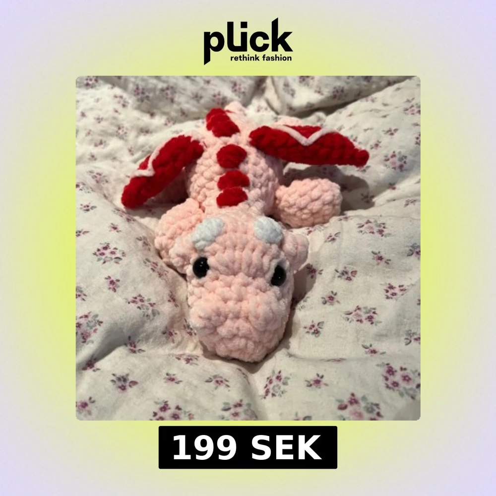 Eftersom dessa inte såldes på vinted kommer det några fler sötnosar här! Denna draken är ljusrosa med röda detaljer🩷❤️ OBS: !Dessa innehåller säkerhetsögon som inte rekommenderas för barn under 3 år!