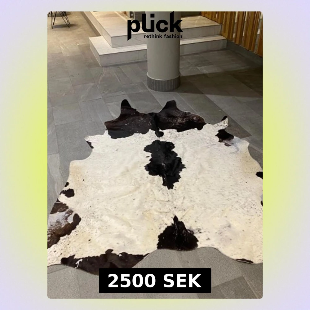 Säljer en stor kohudsmatta i äkta läder med naturligt svart och vitt mönster. Perfekt som inredningsdetalj för att ge rummet en rustik och trendig känsla. Mattan har oregelbunden form och unika färgskiftningar. Mått: 215x190cm. Nypris:7000kr