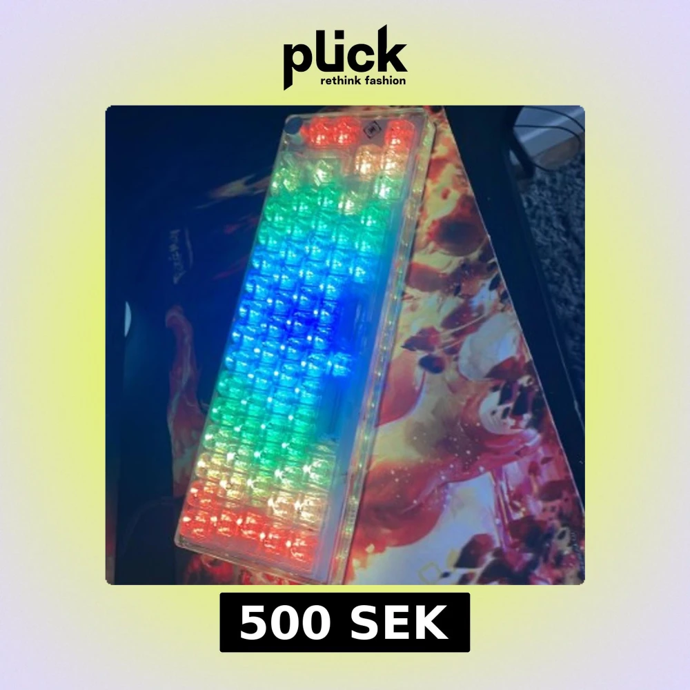 Snyggt transparent gamingtangentbord med RGB-belysning i regnbågens färger. Perfekt för dig som vill sticka ut på gamingkvällarna och gillar cool design. Kompakt 65%-layout, hot-swappable switches och mjukvara för anpassning. Gör din setup unik!