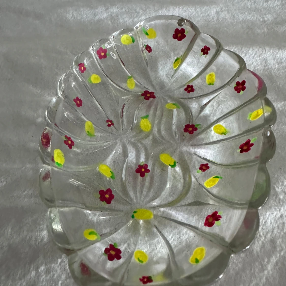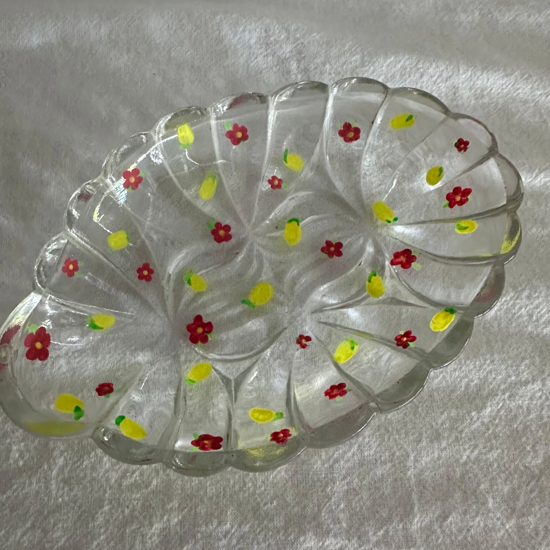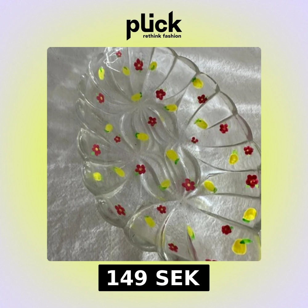 Ett handmålat litet fat i glas. Suuper gulligt att ha tex smycken i eller två citroner nu i sommar! Använd gärna köp nu!💗