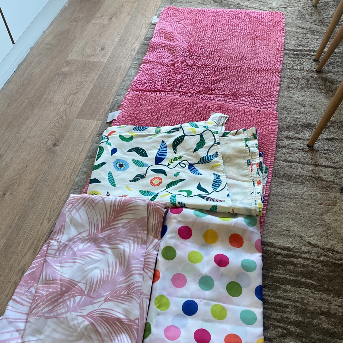 2 toalletmattor och 3 dusch gardiner för 200kr