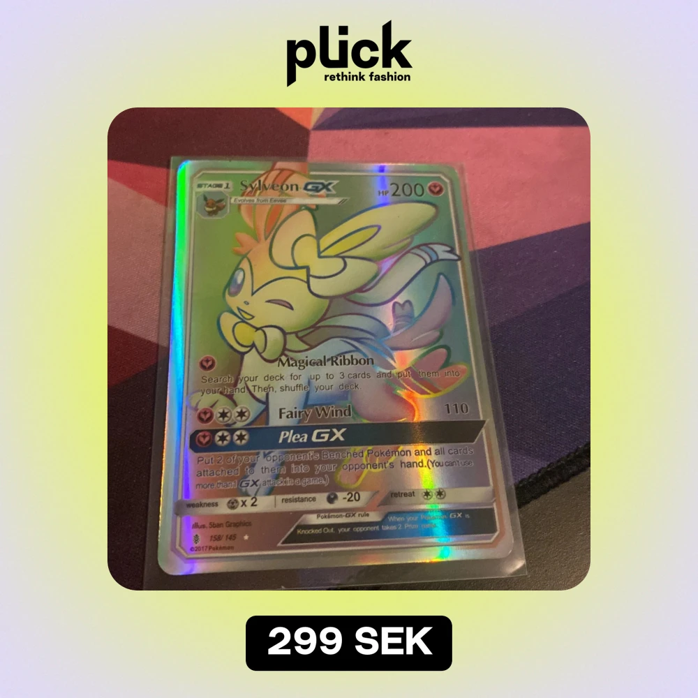 Säljer ett Sylveon GX Pokémonkort. Kortet har en holografisk yta och visar Sylveon i en glad pose. Kortet är i bra skick och perfekt för samlare eller spelare som vill stärka sin lek. Ny pris 1,000 på ebay.